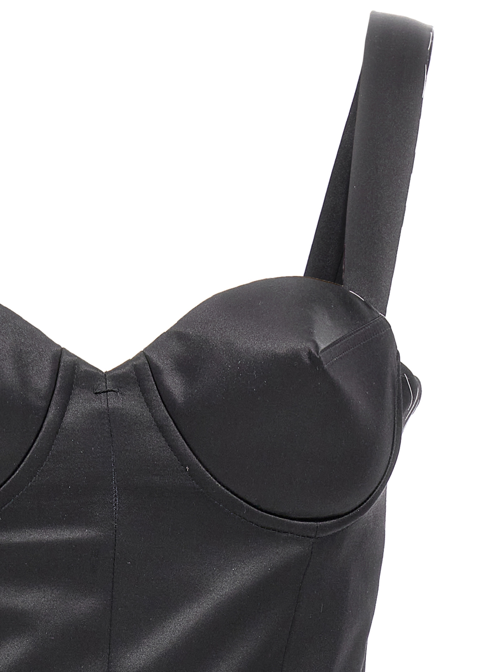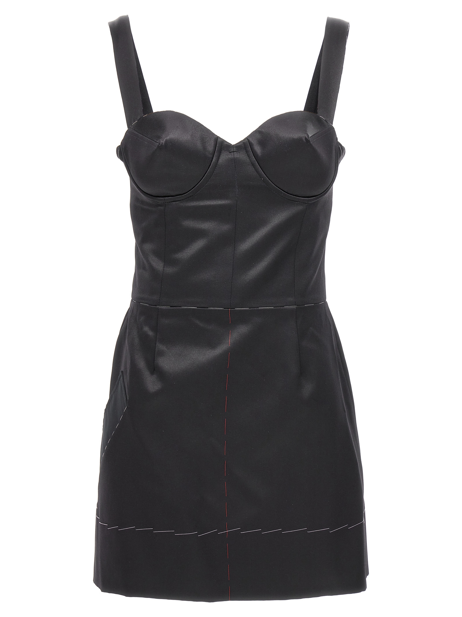Corset silk blend dress with rigid pointed cups, shoulder straps, contrast stitching, back zip closure and a side pocket.