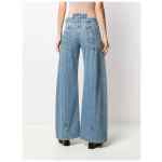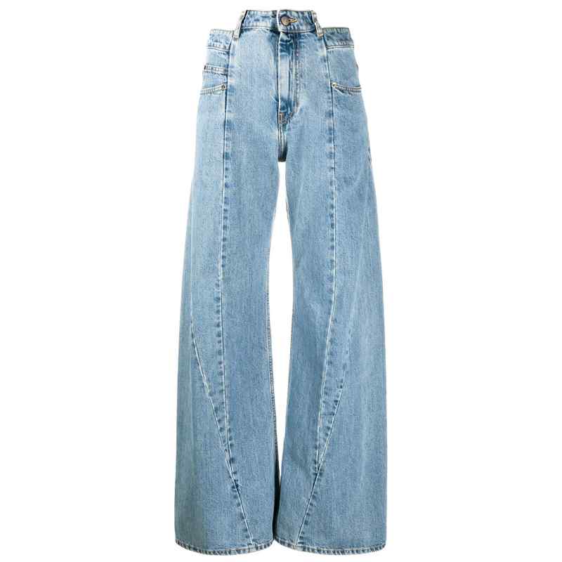 blue cotton-denim stonewashed wide leg signature Décortiqué design four-stitch moniker to the back high waist belt loops button and zip fly fastening classic five pockets Denim cotton jeans.