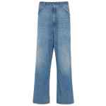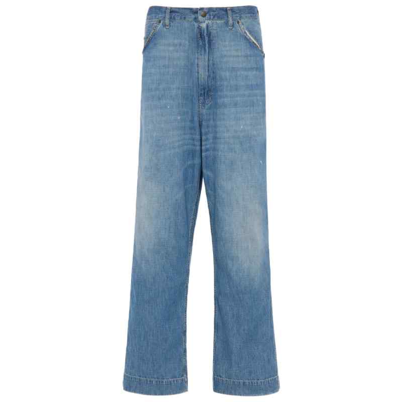 blue panelled design belt loops back patch pocket front patch pocket straight leg Denim cotton jeans.