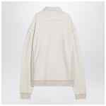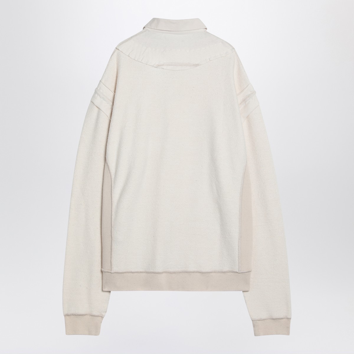 Maison Margiela sweatshirt in ecru cotton jersey, characterized by sections with an unfinished aesthetic, polo-style neckline above the crew neck, Four Stitches on the back, long sleeves, and ribbed edges.