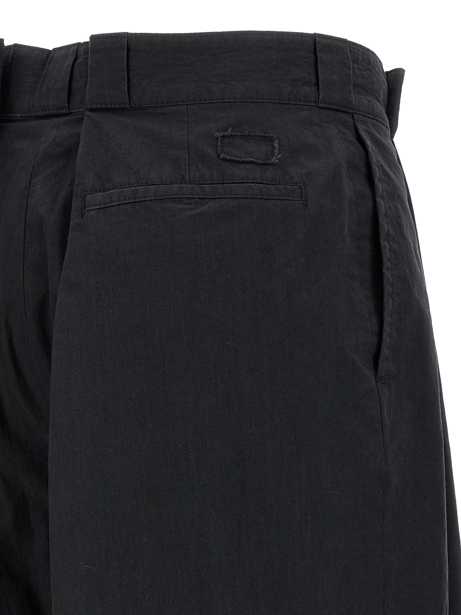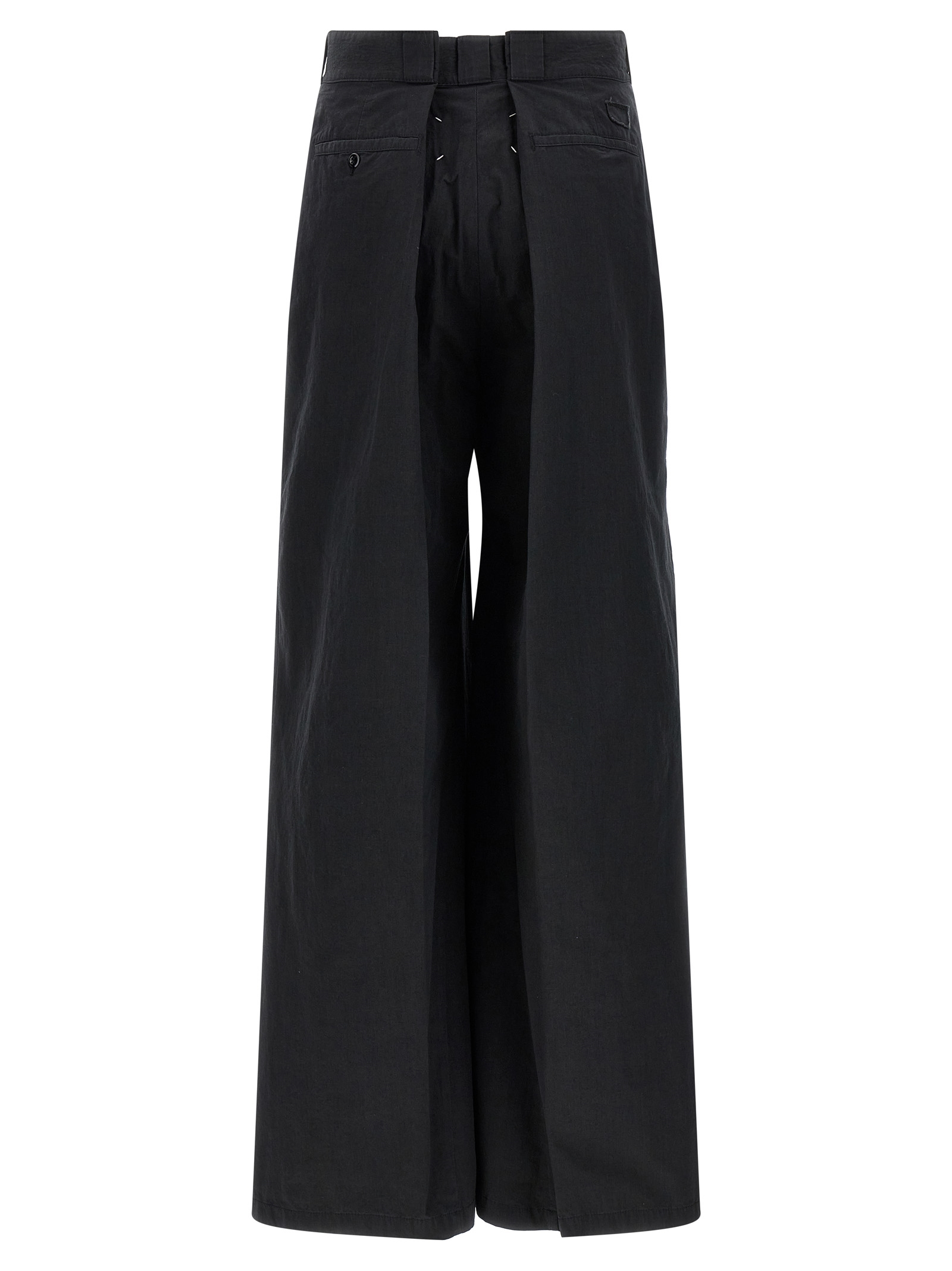 Cotton blend trousers, wide and straight leg, zip and hook closure, pockets, Four stitches at the back.