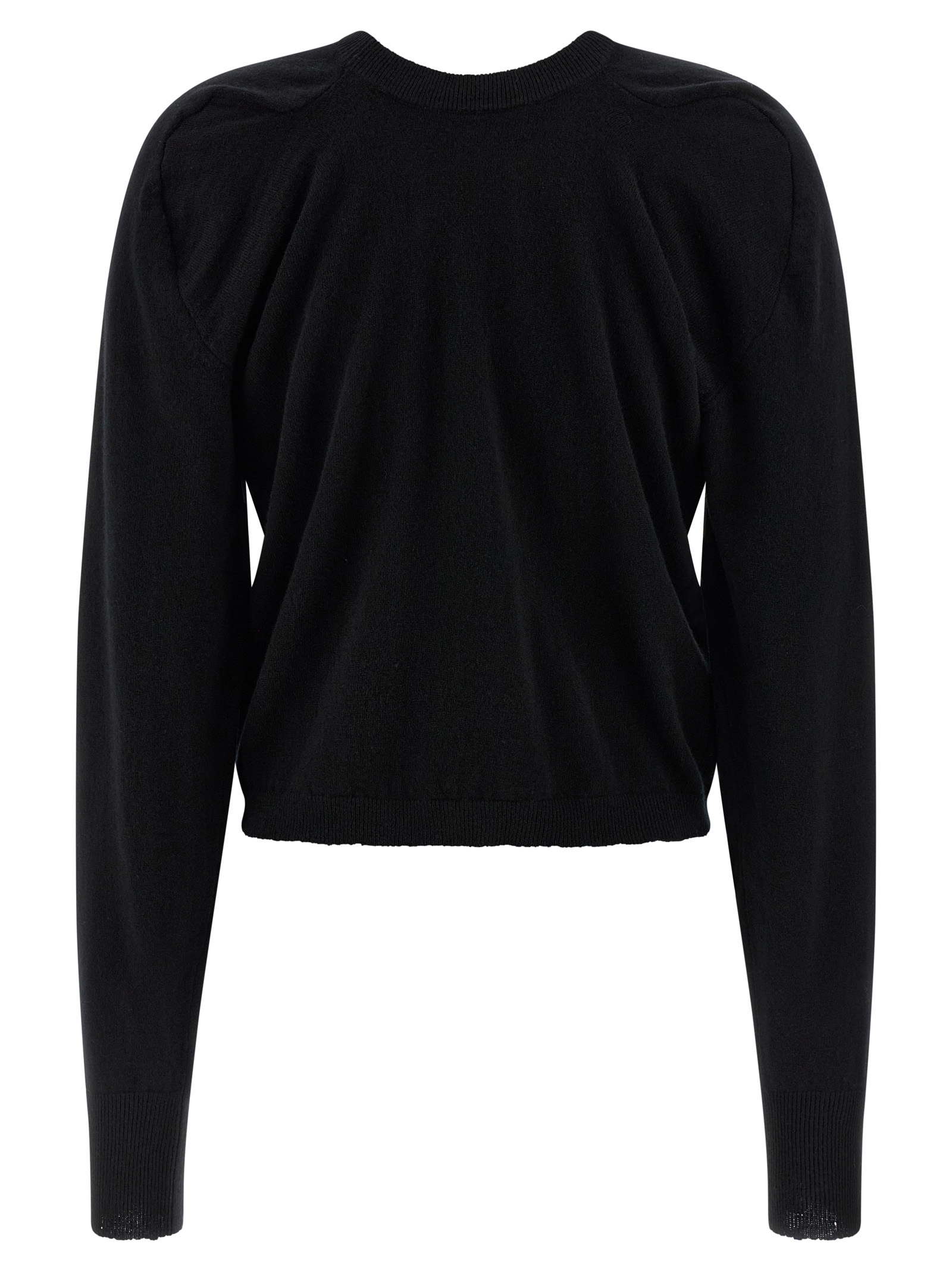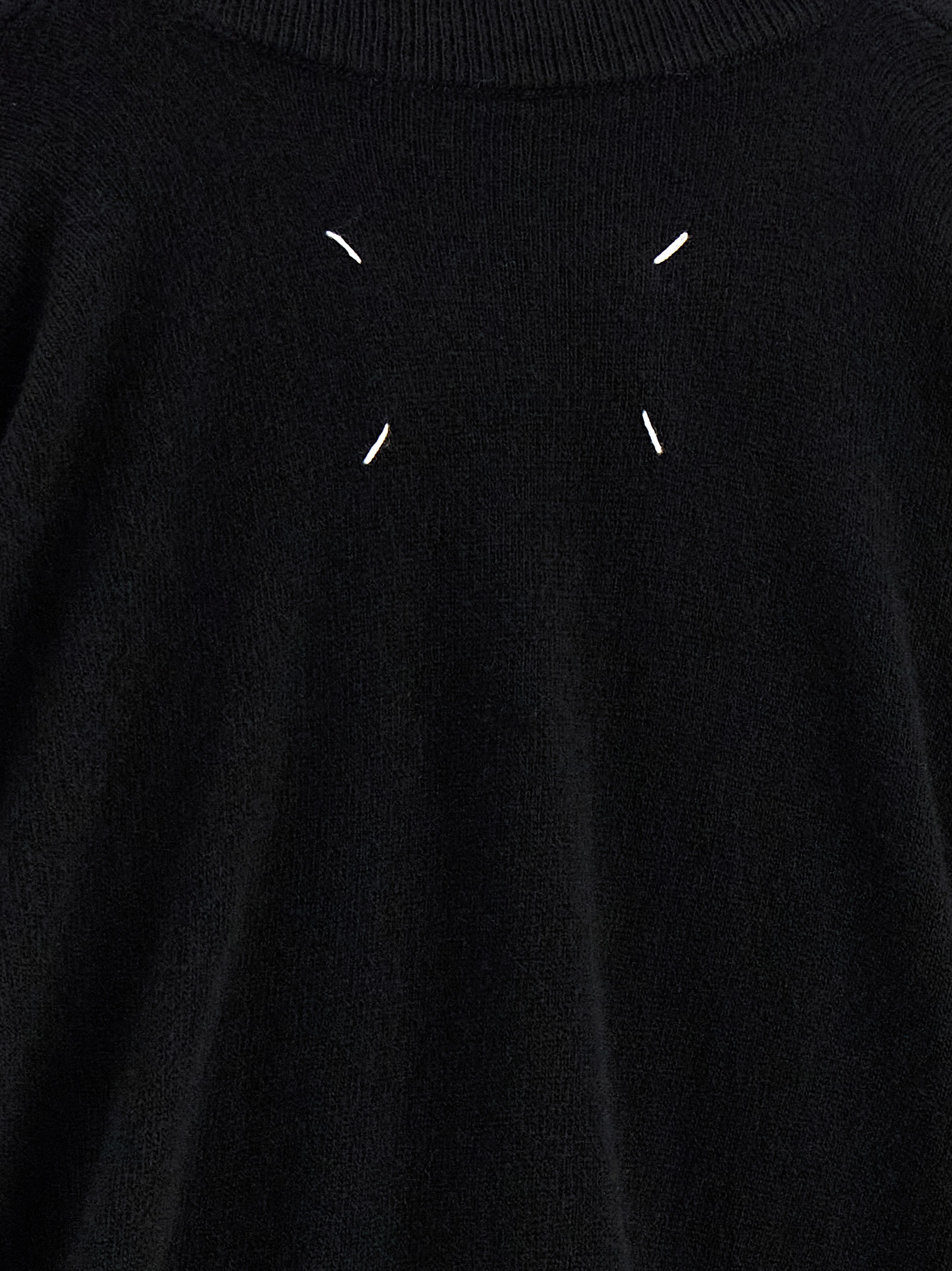 Wool sweater, crew neck, ‘Four stitches’ back, long cuffed sleeves.