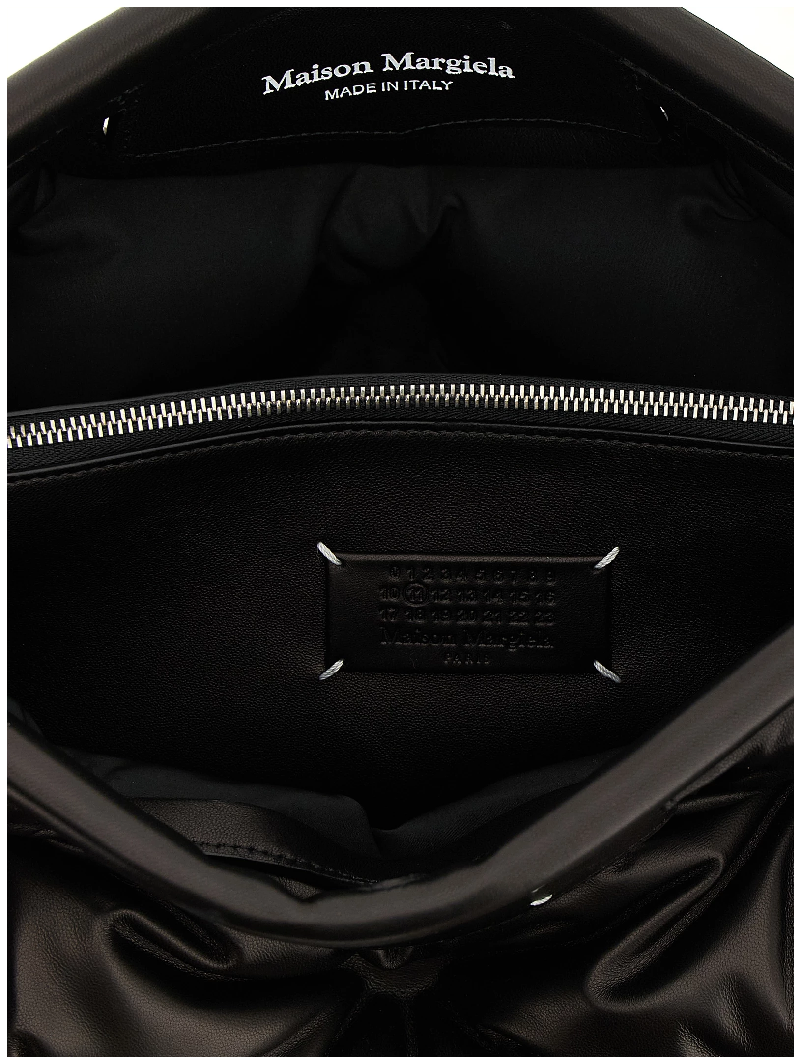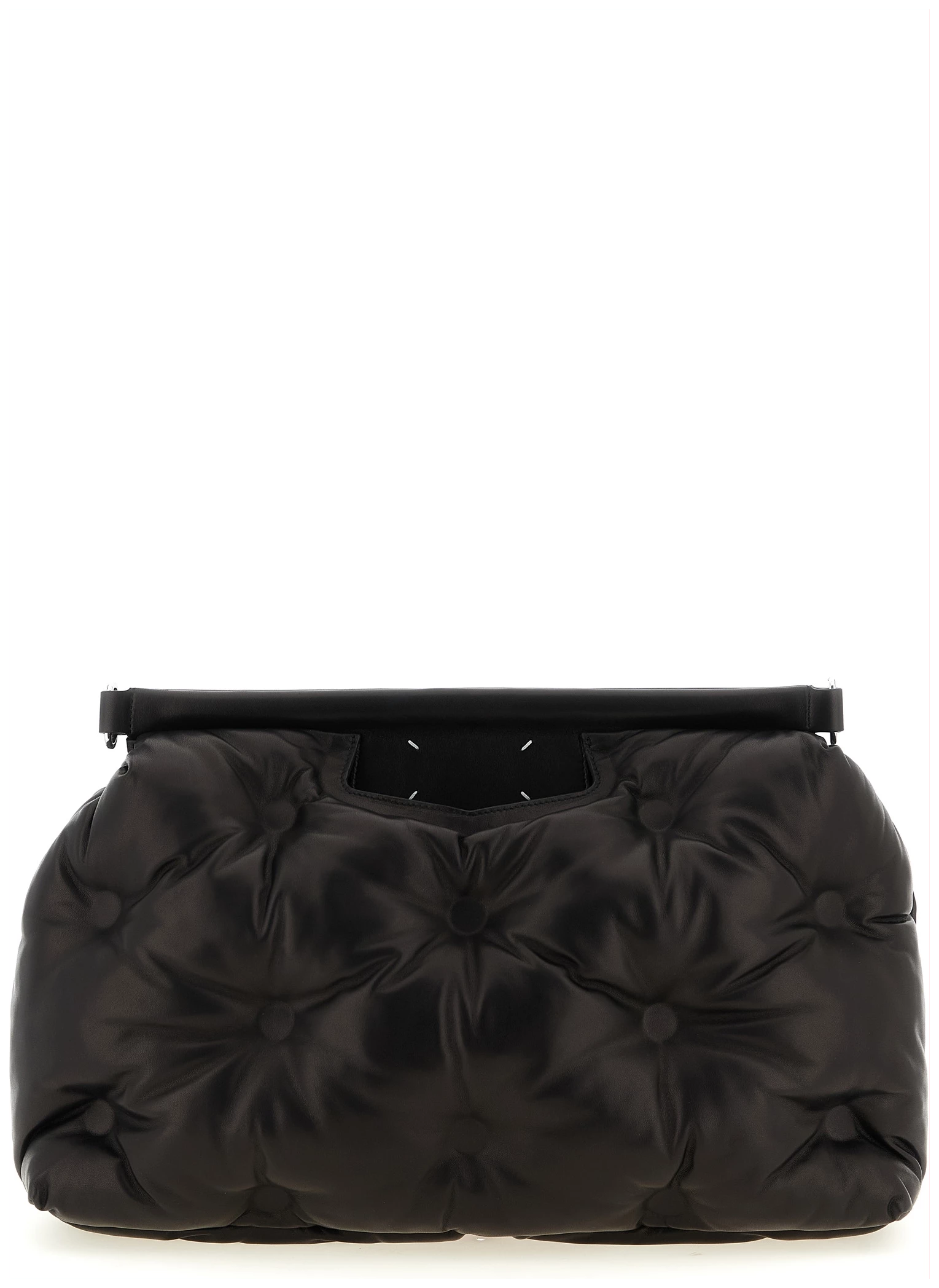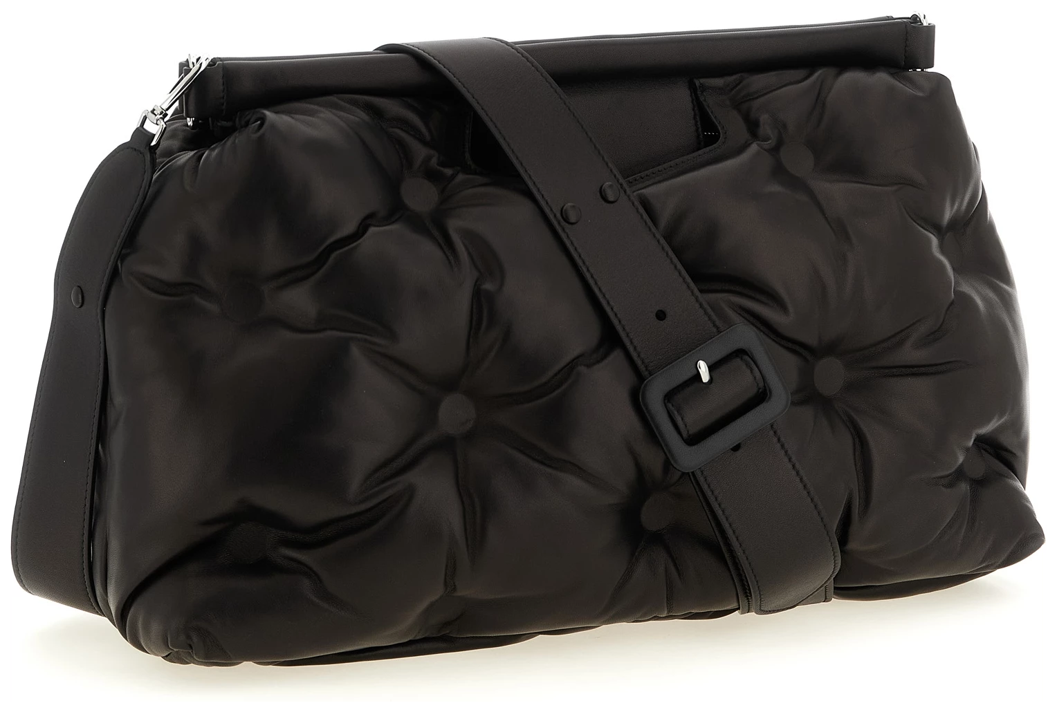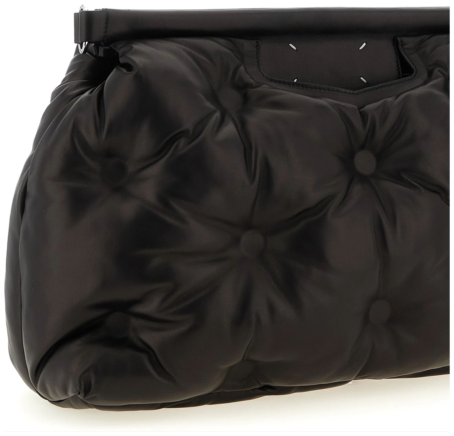 Large ‘glam slam classique’ shoulder bag in quilted and padded matelassé effect nappa leather, Rigid magnetic opening, ‘four stitches’ in the flap on the handle, Adjustable and removable shoulder strap, Matching removable inner clutch.