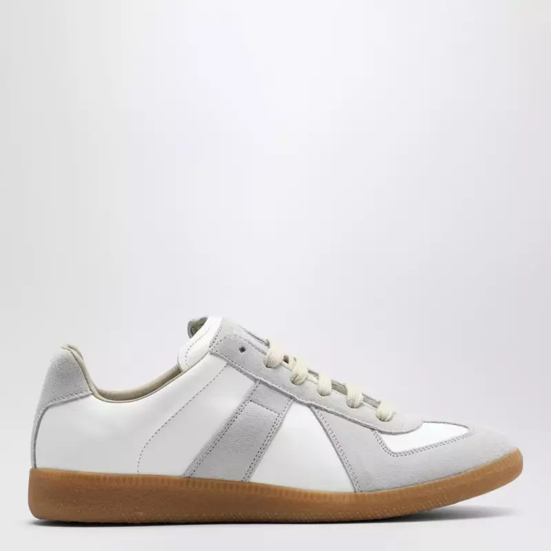 Sneakers by Maison Margiela in white leather with light grey suede inserts