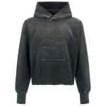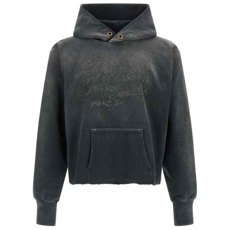 grey logo embroidery kangaroo pocket raw-cut hem Logo cotton hoodie.