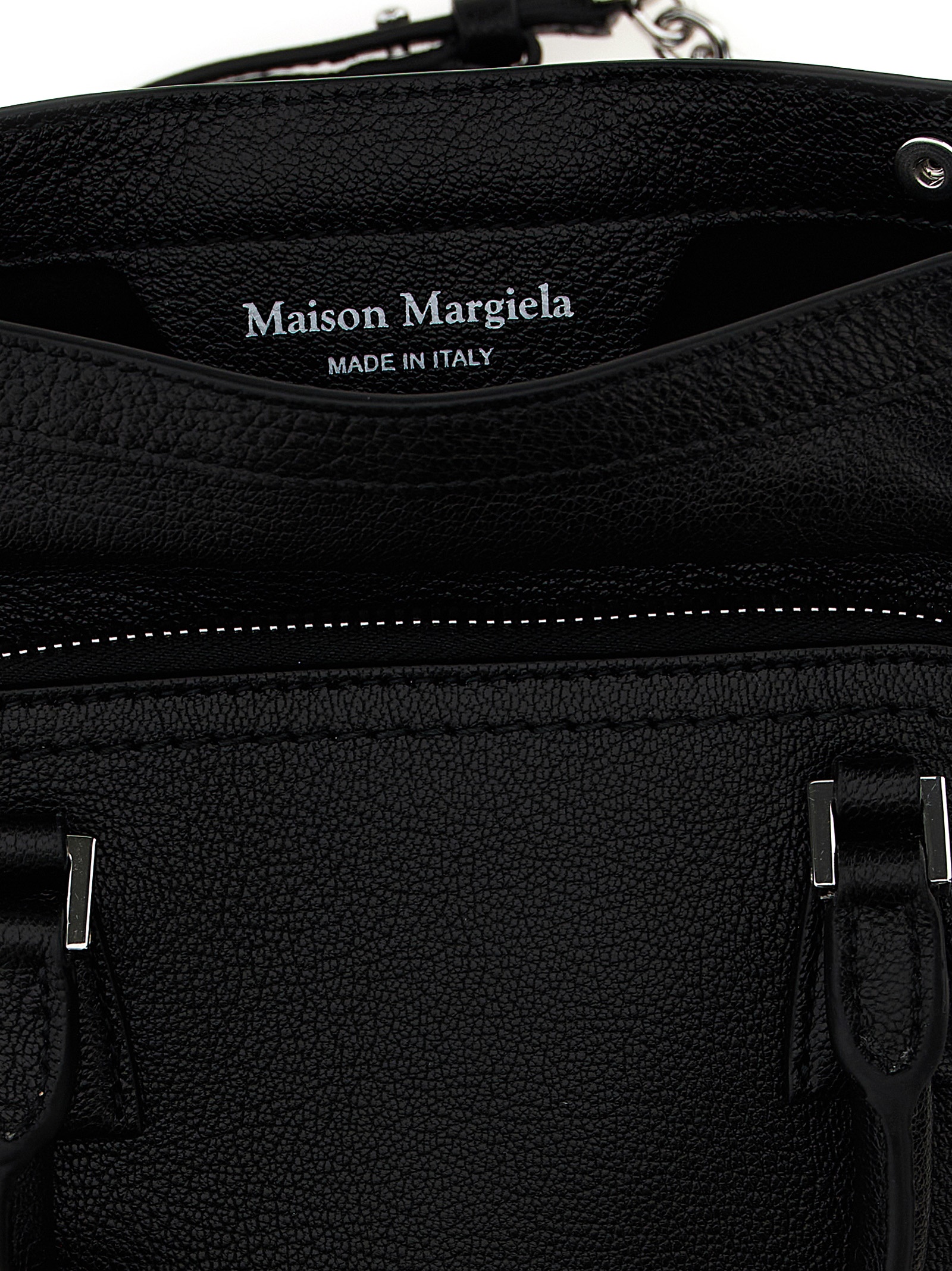 Micro ‘5AC Classique’ goat leather handbag, folded closure with zip and ‘Numeric signature MM6’ patch, double fixed handle, back ‘Four stitches’, chain shoulder strap with removable leather protection.