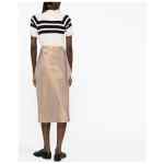 floral-detail midi skirt from Maison Margiela featuring gold-tone, satin finish, floral detail, signature four-stitch logo, high-waisted, rear zip fastening, straight hem and mid-length. Floral-detail midi skirt