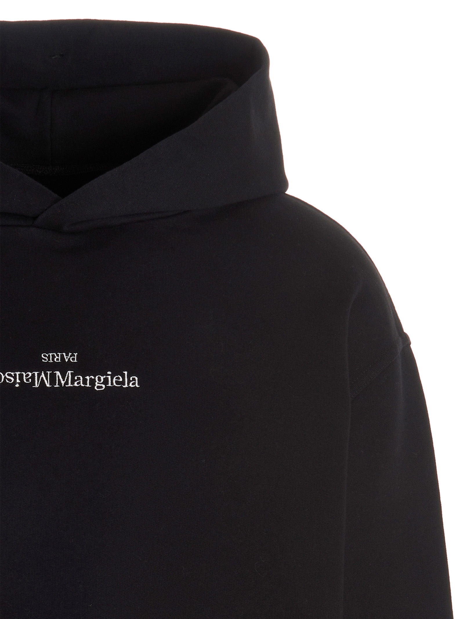 Cotton hoodie with embroidered ‘Maison Margiela Paris’ logo on the front, long cuffed sleeves.