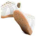 white calf leather contrasting panel detail round toe front lace-up fastening flat rubber sole Replica leather sneakers
