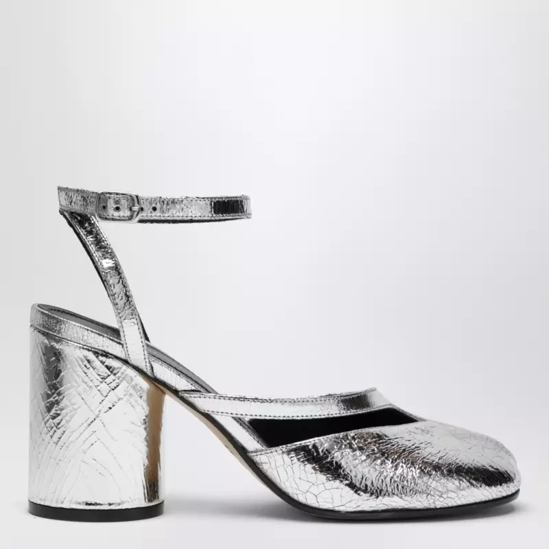 Tabi heeled sandals in calfskin leather with Broken Mirror finish by Maison Margiela