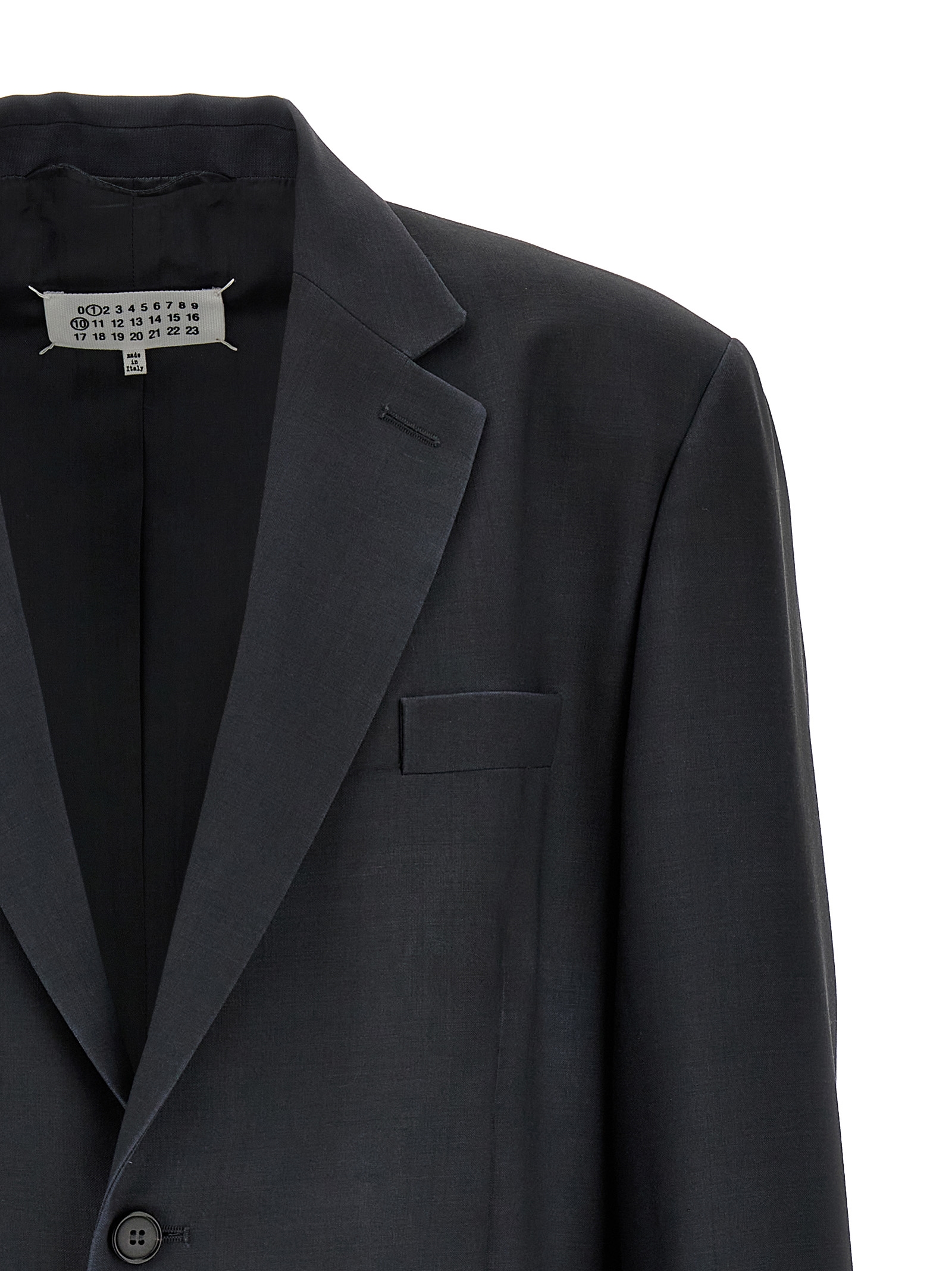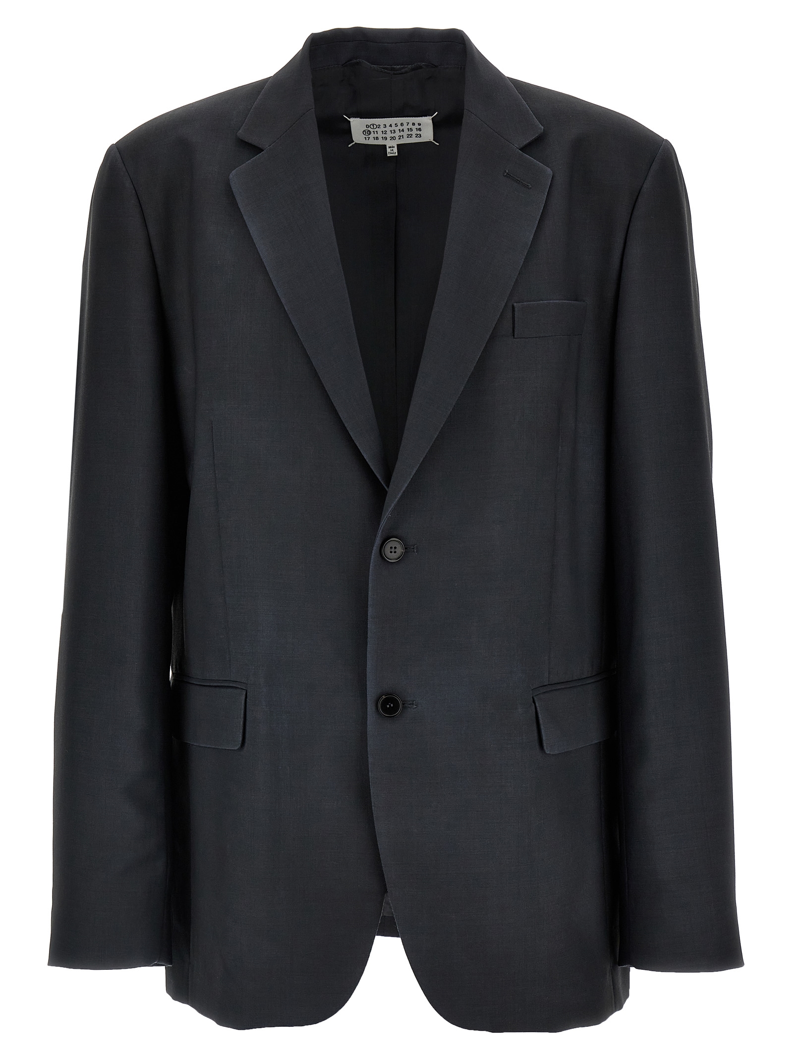 Single-breasted blazer in wool and mohair blend, Mirror lapels, Button closure, Long sleeves, Pockets.