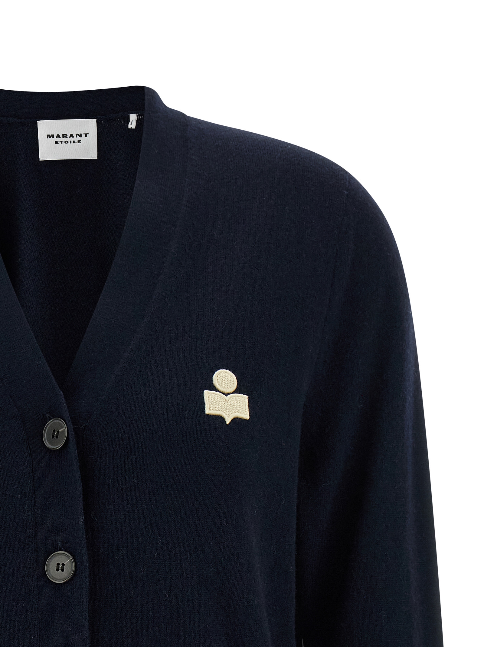 ‘karina’ mélange cotton and wool blend cardigan, Contrast logo embroidery and front horn button closure, V-neck, Long cuffed sleeves, And band on the hem. Size and Fit – True to size fit – french size