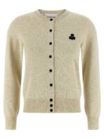 ‘mona’ sweater in cotton, Viscose and wool mélange blend, Logo patch and front button closure, Crew neck, Long cuffed sleeves. Size and Fit – true to size fit – FRENCH size