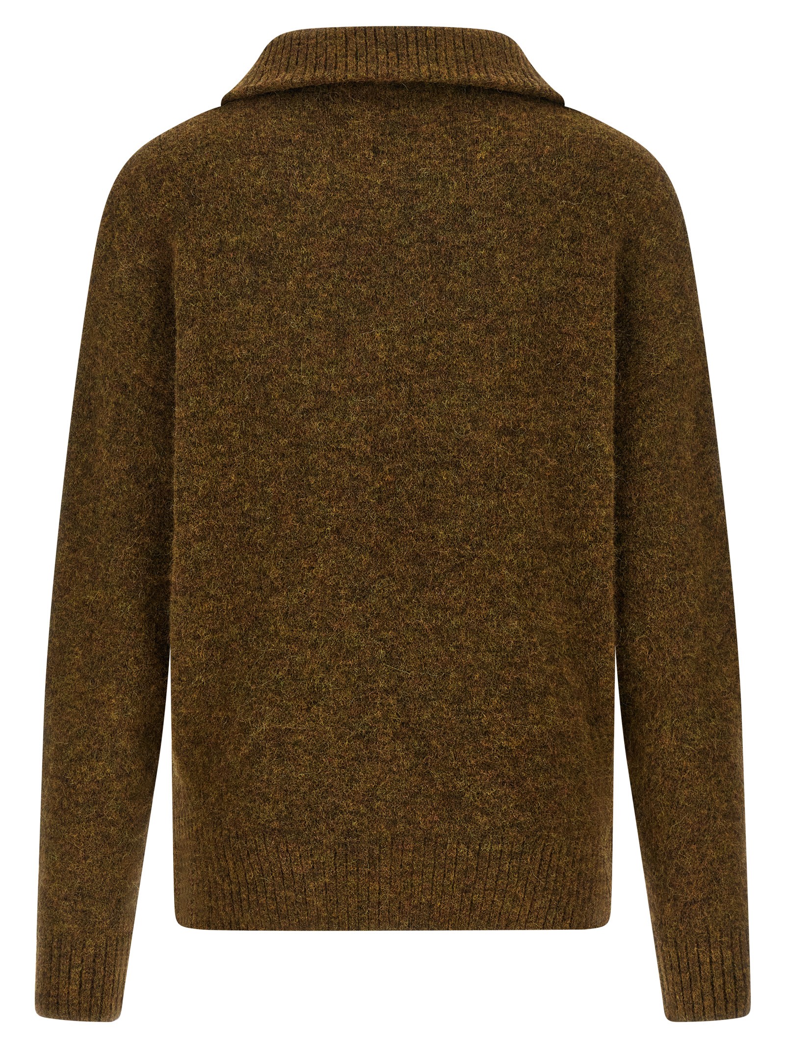 ‘phylia’ alpaca blend sweater with collar, V-neck with adjustable laces detail, Long sleeves with cuffs and dropped shoulders. Size and Fit – Comfort fit – french size