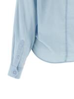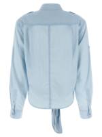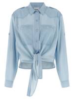 ‘valiane’ light cotton shirt with western design, Pockets, Badges on the shoulders, Front mother-of-pearl button closure, Long sleeves with turn-up cuffs and dropped shoulders, Asymmetrical hem with front part to be knotted. Size and Fit – oversize fit – FRENCH size