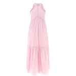 Long ‘vasma’ dress in cotton voile with column point details, Flared silhouette, Front v-neck with crochet-finish ruffles, Back american neckline, Asymmetrical hem, Lining._x000d_