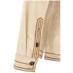 ‘rudy’ cotton canvas overshirt with contrast embroidery, Pointed collar, Chest pocket, Front horn button closure, Long sleeves with cuffs and dropped shoulder, Back rack with cannon pleats, Side slits, Asymmetrical hem. Size and Fit – Comfort fit