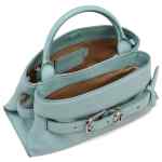sky blue top handle buckle detail detachable strap internal zip pocket silver-tone hardware This piece comes complete with a protective dust bag. The Satchel small leather handbag