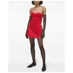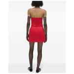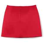 red satin finish bias cut rear zip fastening dart detailing side slit above-knee length Duchess satin skirt