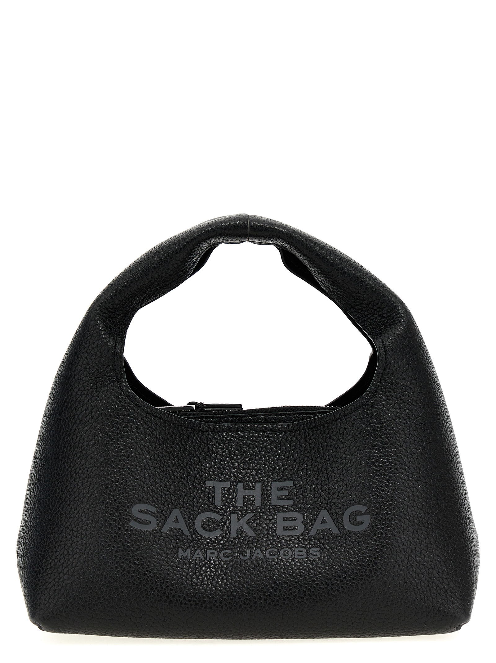 ‘The mini Sack’ full-grain leather handbag with front embossed logo, handle, magnetic closure, leather clutch bag and removable inner fabric.