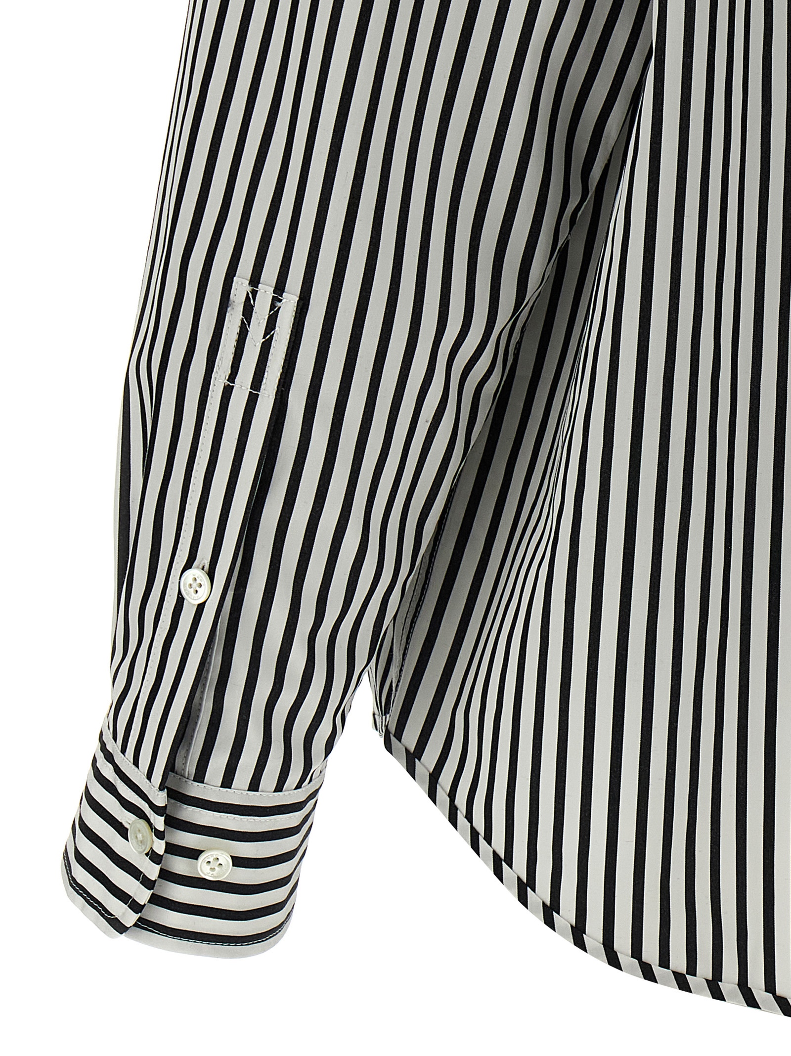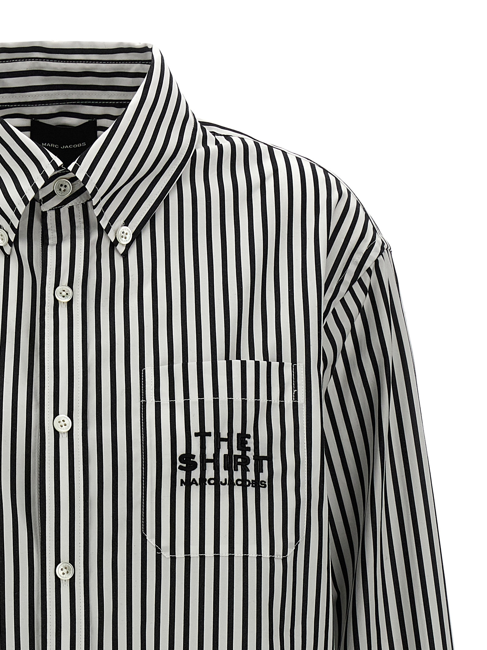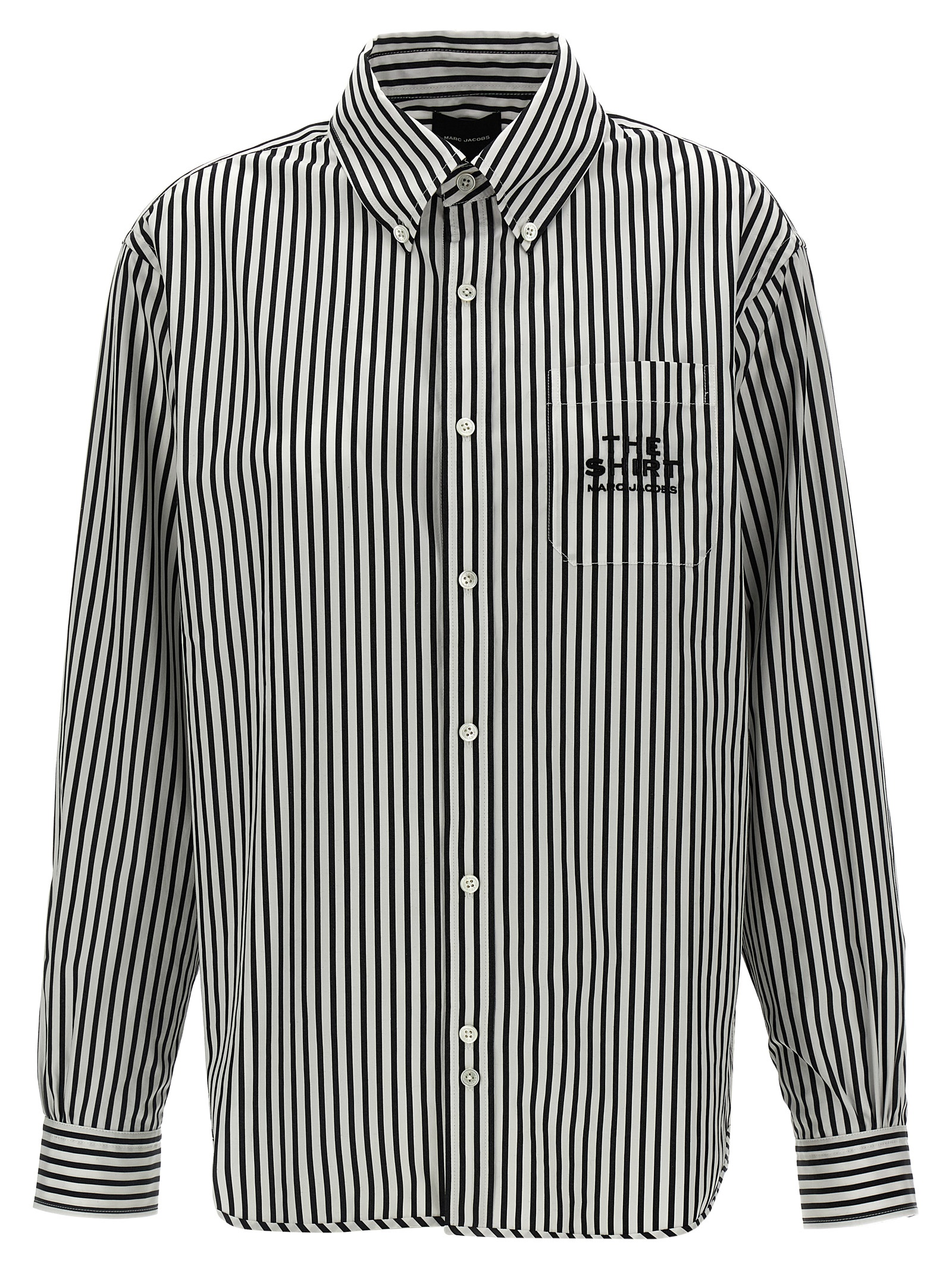 ‘The Striped Shirt’ striped cotton shirt with button-down style, pocket with embroidered logo, button closure, long cuffed sleeves.