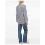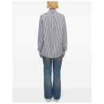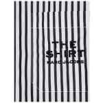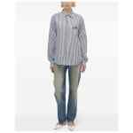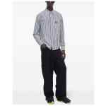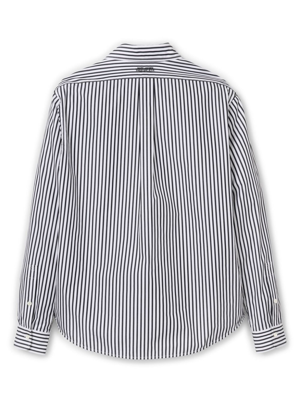 black/white cotton vertical stripe pattern front button fastening mother-of-pearl buttons classic collar embroidered logo chest patch pocket long sleeves curved hem Striped cotton shirt