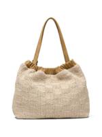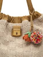 beige woven design top handles flower detail drawstring detail gold-tone hardware The Tote rafia tote.