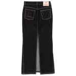 black organic cotton denim panelled design crescent moon print front button and zip fastening belt loops contrast stitching classic five pockets logo patch to the rear Crescent Moon embroidery rear slit asymmetric hem long length This item is made from at least 50% organic materials. Learn more about what makes a product Conscious on our Conscious Criteria page Moon denim long skirt