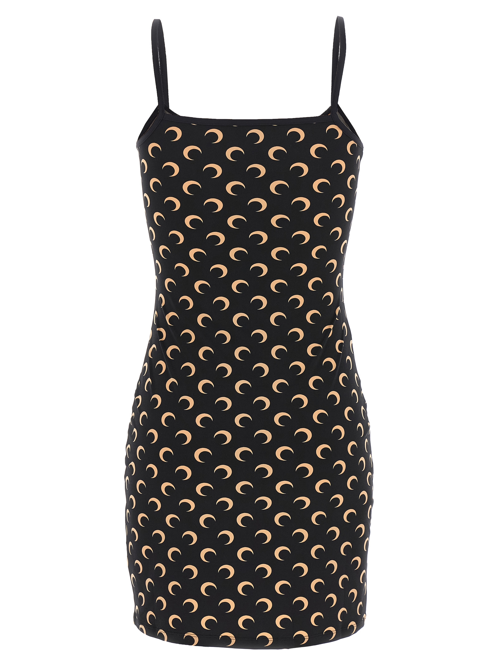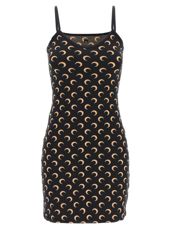 All-over stretch jersey dress with all-over ‘moon’ print, Wide front v-neck, Thin straps, Sleeveless. Size and Fit – Slim fit