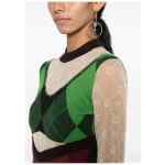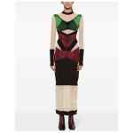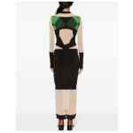 multicolour cotton/wool/recycled polyamide blend colour-block design ribbed detailing long sleeves straight hem round neck Wool long dress