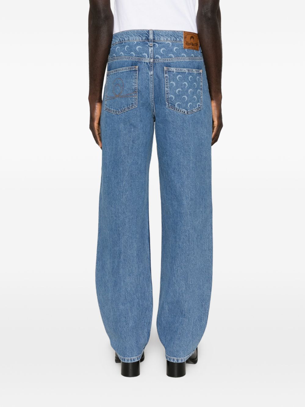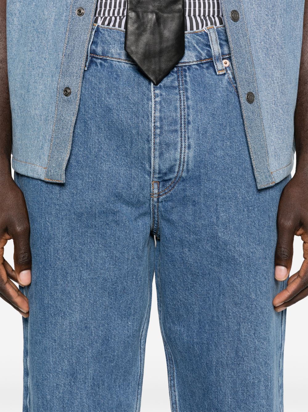 blue logo print button fastening five pockets belt loops tonal stitching Straight leg denim jeans.