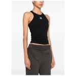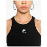 black organic cotton blend fine ribbed Crescent Moon embroidery round neck sleeveless straight hem Moon cotton tank top