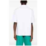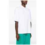 white organic cotton jersey texture logo patch at the sleeve polo collar short sleeves short side slits straight hem short front button fastening Logo cotton polo shirt