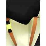Plastic shopping bag with front logo print, Double leather handle with buckle detail. Size and Fit – W 33 x h 40 x d 15 cm