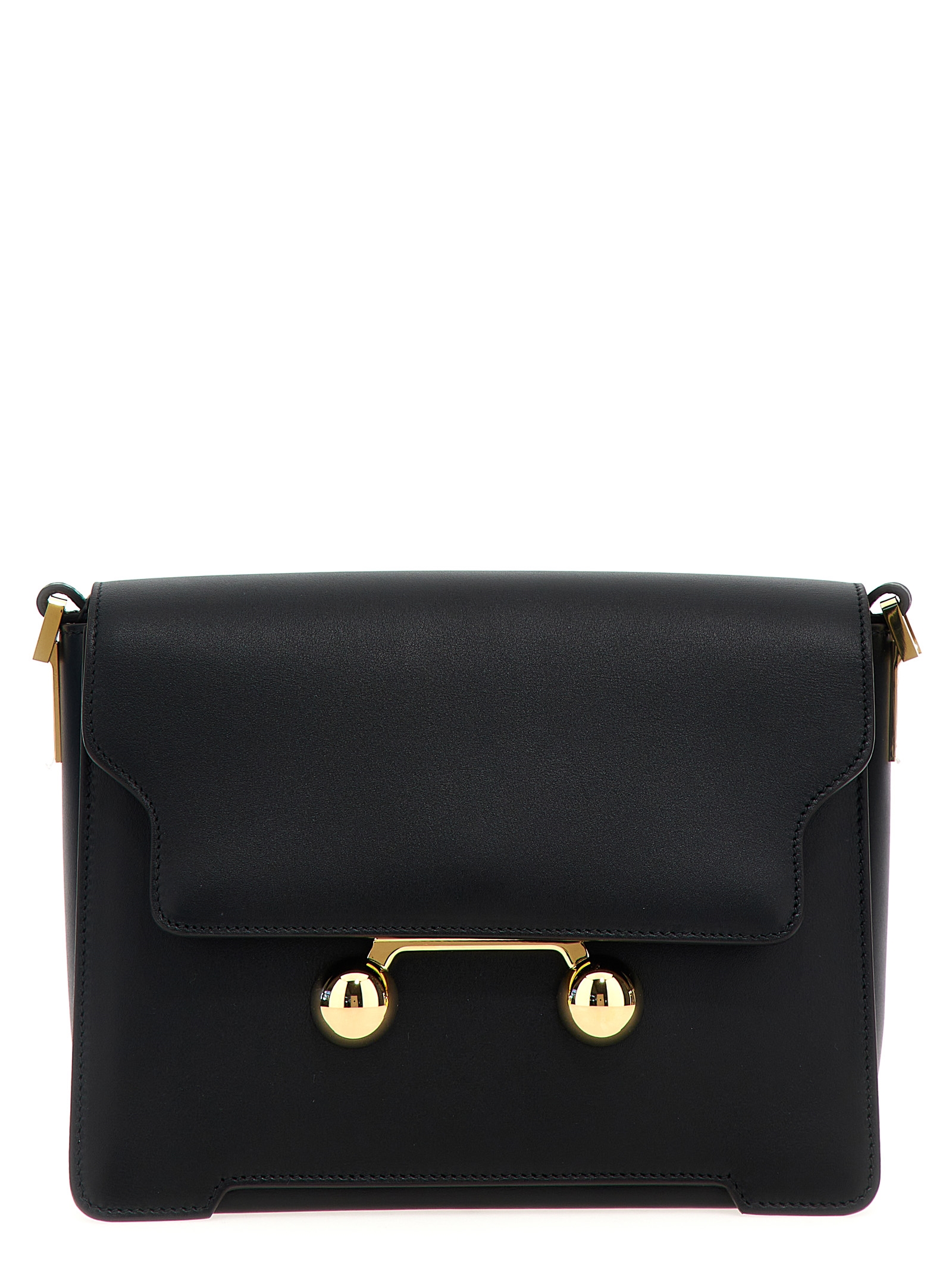 ‘Trunkaroo’ medium leather shoulder bag, magnetic flap closure, front metal detail, adjustable and removable shoulder strap.