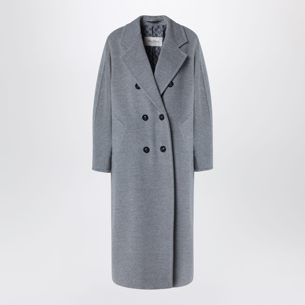 Double-breasted coat by Max Mara in light grey wool and cashmere, featuring an oversized silhouette, classic wide lapels, long turn-up kimono sleeves, two side welt pockets and button fastening.