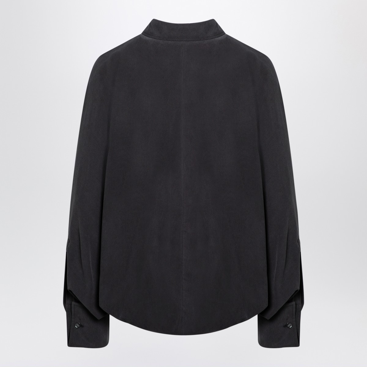 Anthracite grey silk shirt by Max Mara featuring an oversized volume on the back, epaulettes, long sleeves with cufflinks, a classic collar, a concealed front button placket and a body on the bottom.