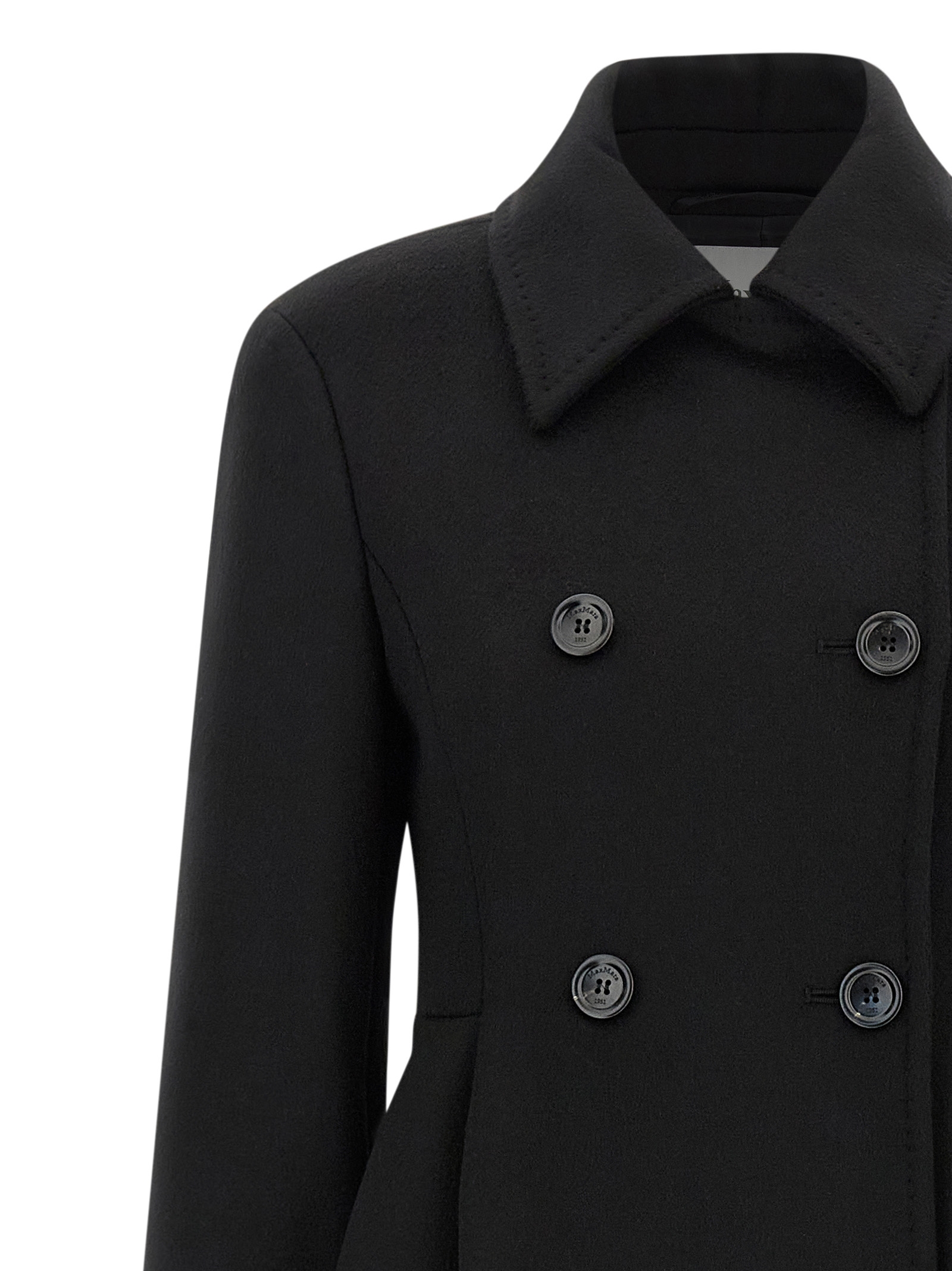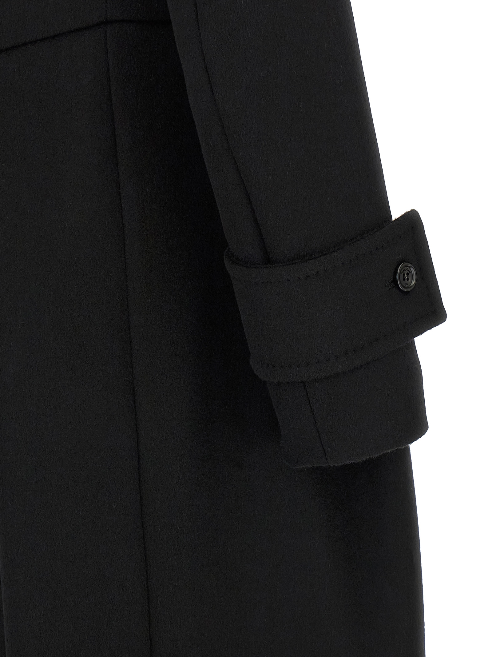 ‘Beati1234’ long coat in double drap of baby camel, double-breasted model with front button closure, hourglass silhouette with pincer at the waist, shirt collar, pockets, structured and padded shoulder strap, long sleeves, kissed pleat at the back.