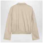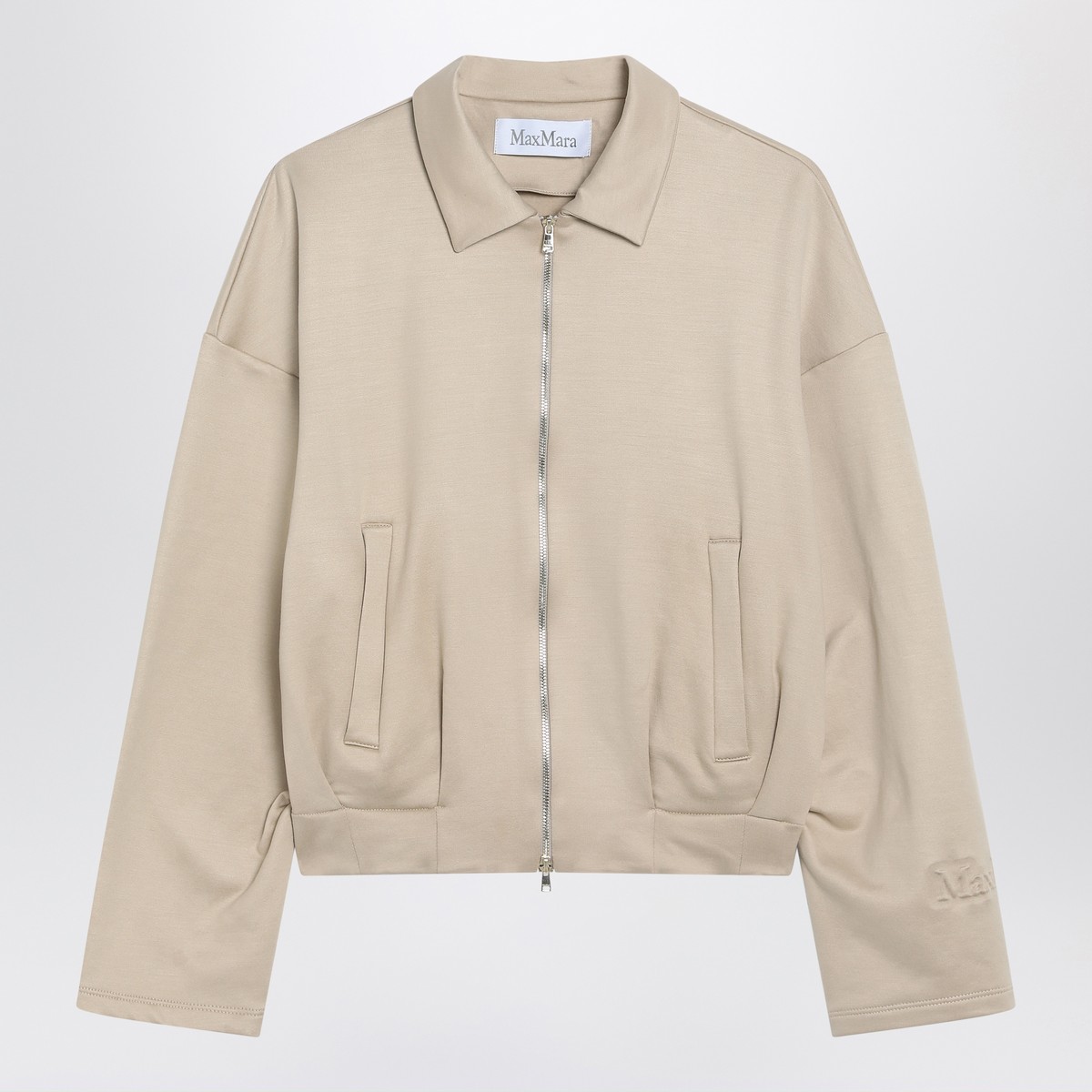 Max Mara sweatshirt in a blend of silk and cotton beige, characterized by a shirt collar, front closure with double zip, two side welt pockets, dropped shoulders, and long sleeves, one of which has embossed logo lettering.