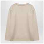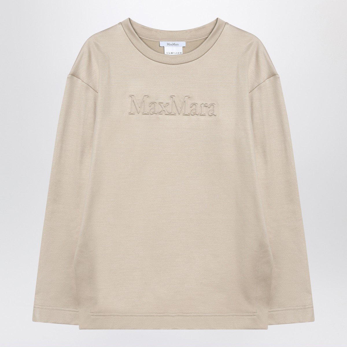 Max Mara sweatshirt in a blend of silk and cotton beige, characterized by raised logo lettering on the chest, straight line, long sleeves with dropped shoulders, deep side slits, and fleece-lined interior.
