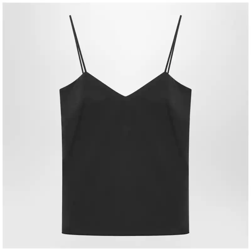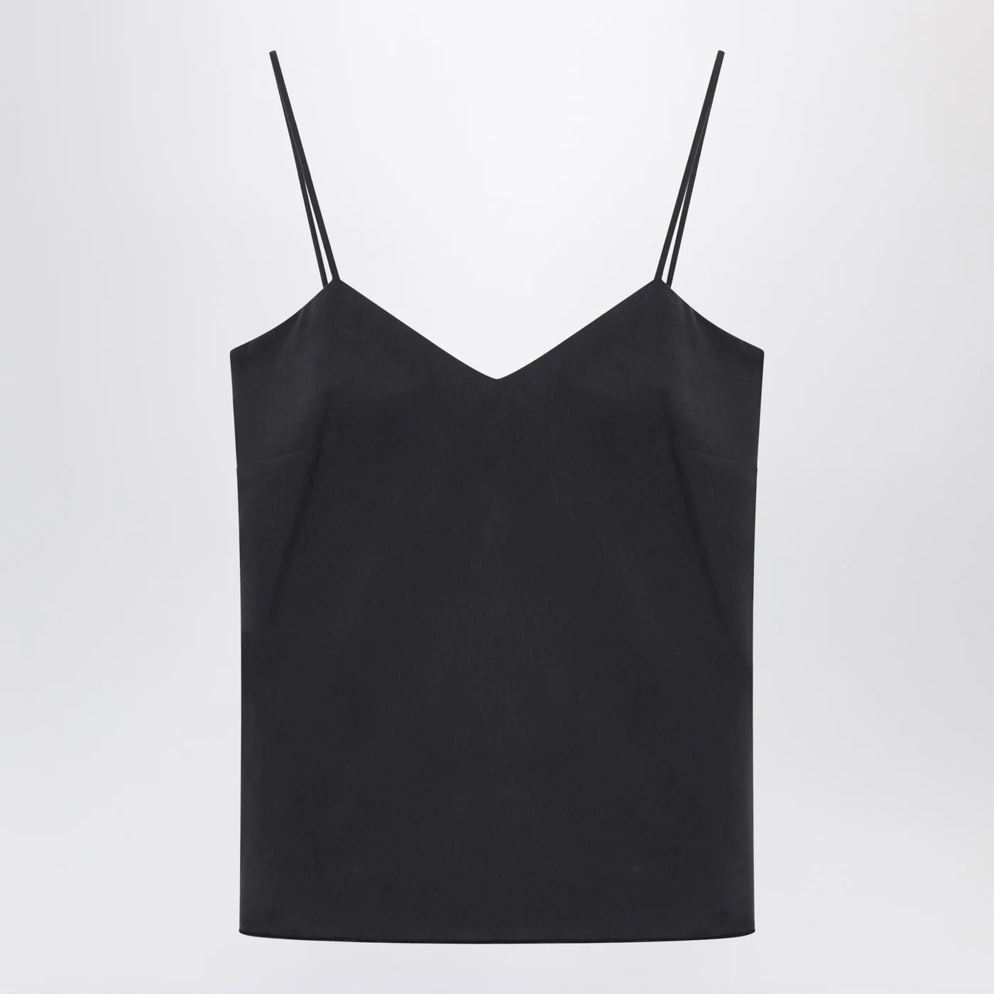 Tank top by Max Mara in blue silk Thin straps V neckline Slip fit Back zip closure. Size and Fit – Model wears size 40 IT Model measurements: Height: 181 cm Chest: 81 cm Waist: 62 cm Hips: 89 cm