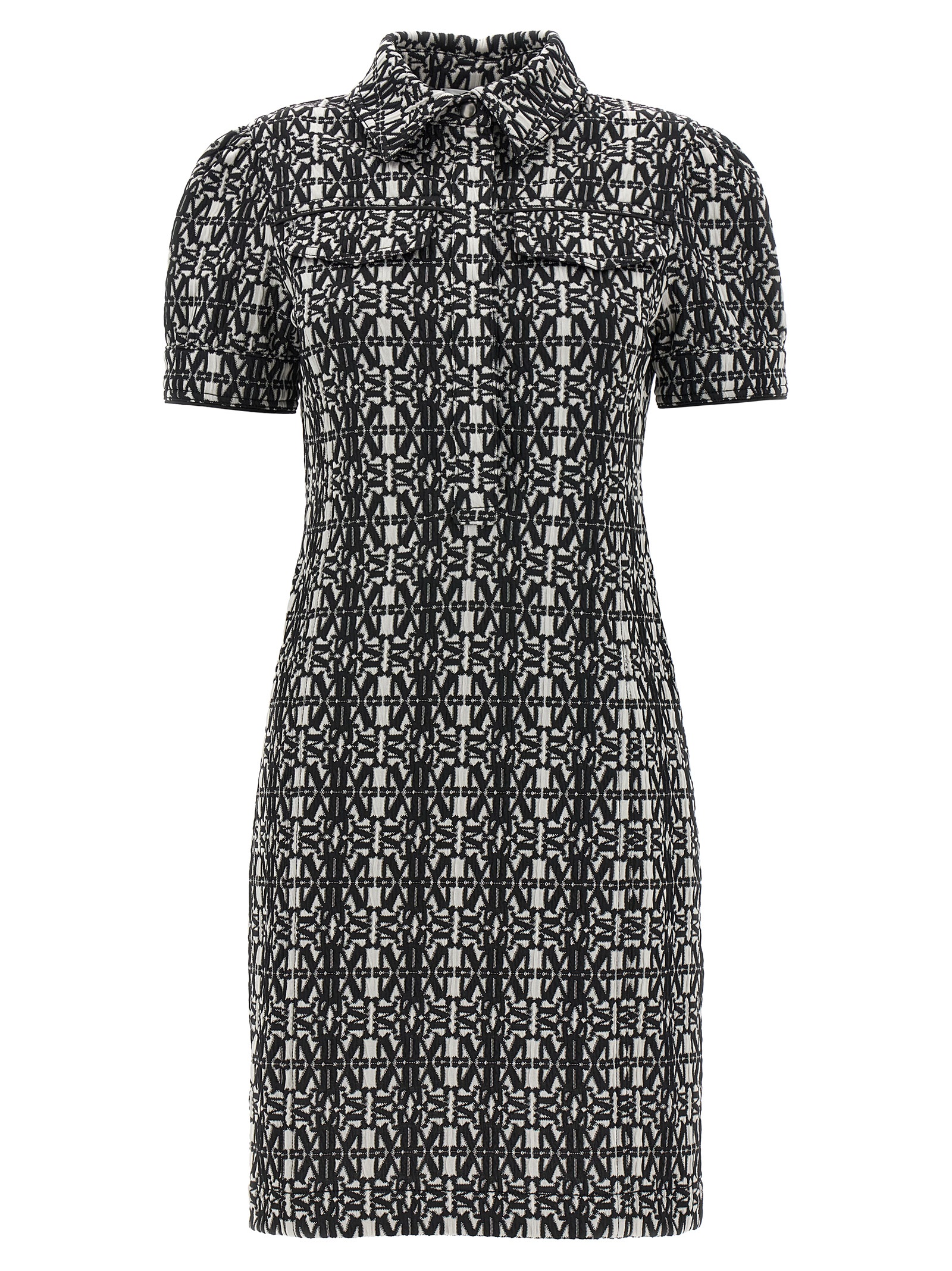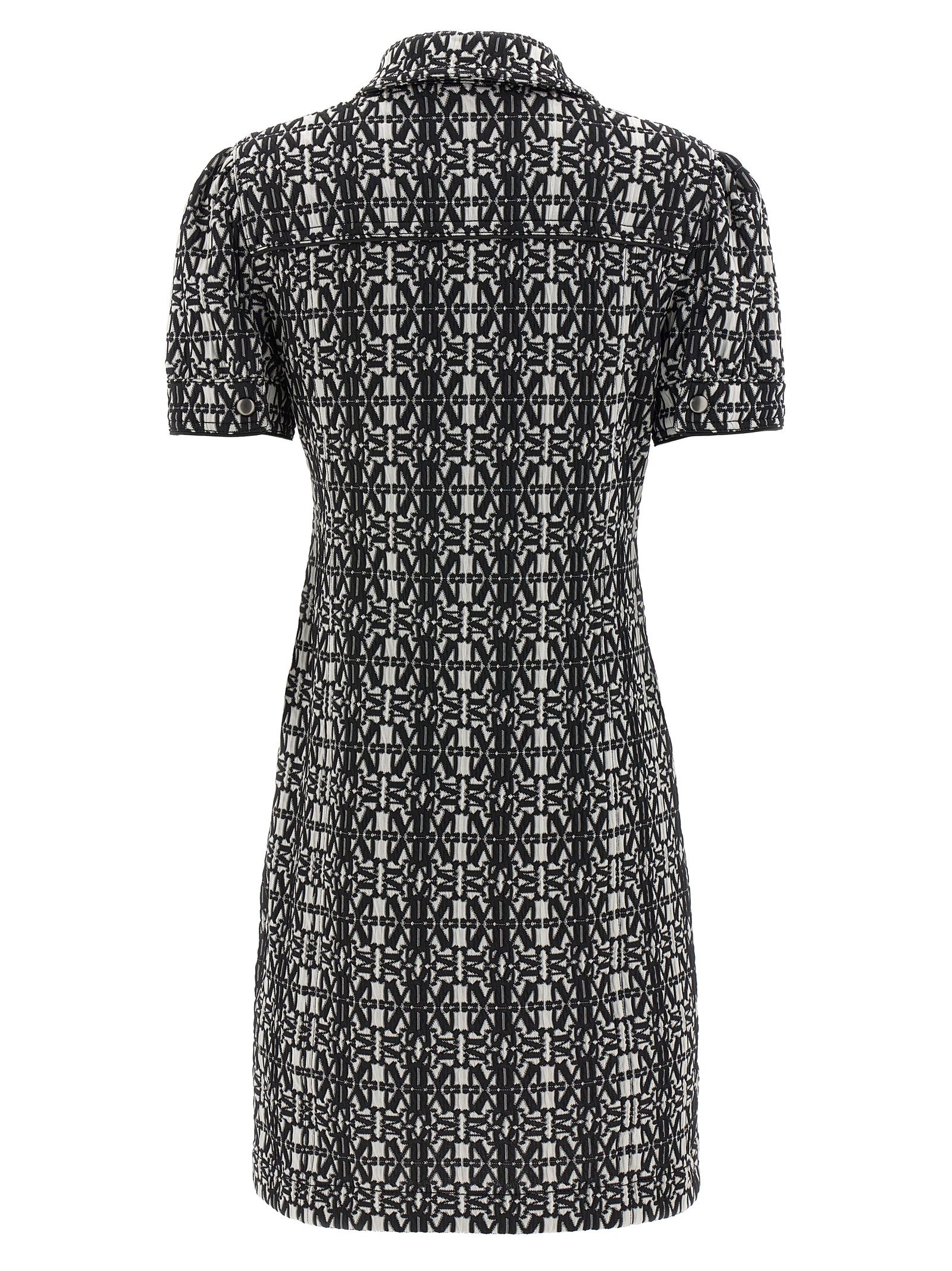 ‘Cesy’ jersey dress with all-over jacquard logo, collar and buttons, front pockets, short sleeves.