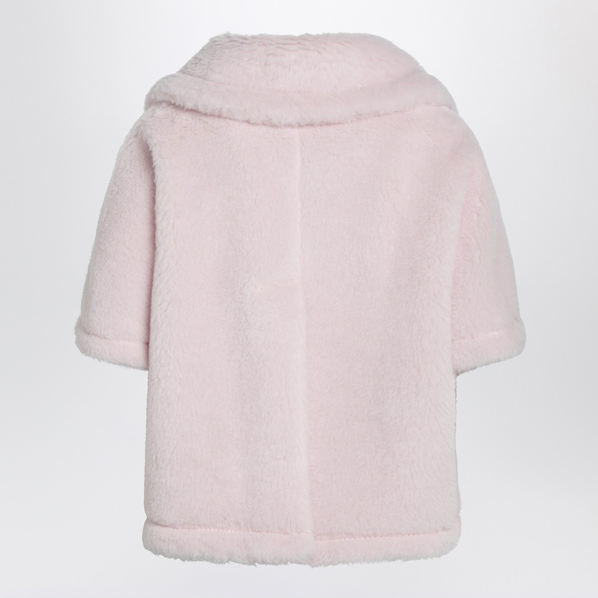 Max Mara cape in Teddy alpaca-and-cashmere fabric on a rose-beige silk base, featuring boxy silhouette, wide notch collar, short kimono sleeves, front button closure, side welt pockets and viscose M-Monogram jacquard lining.