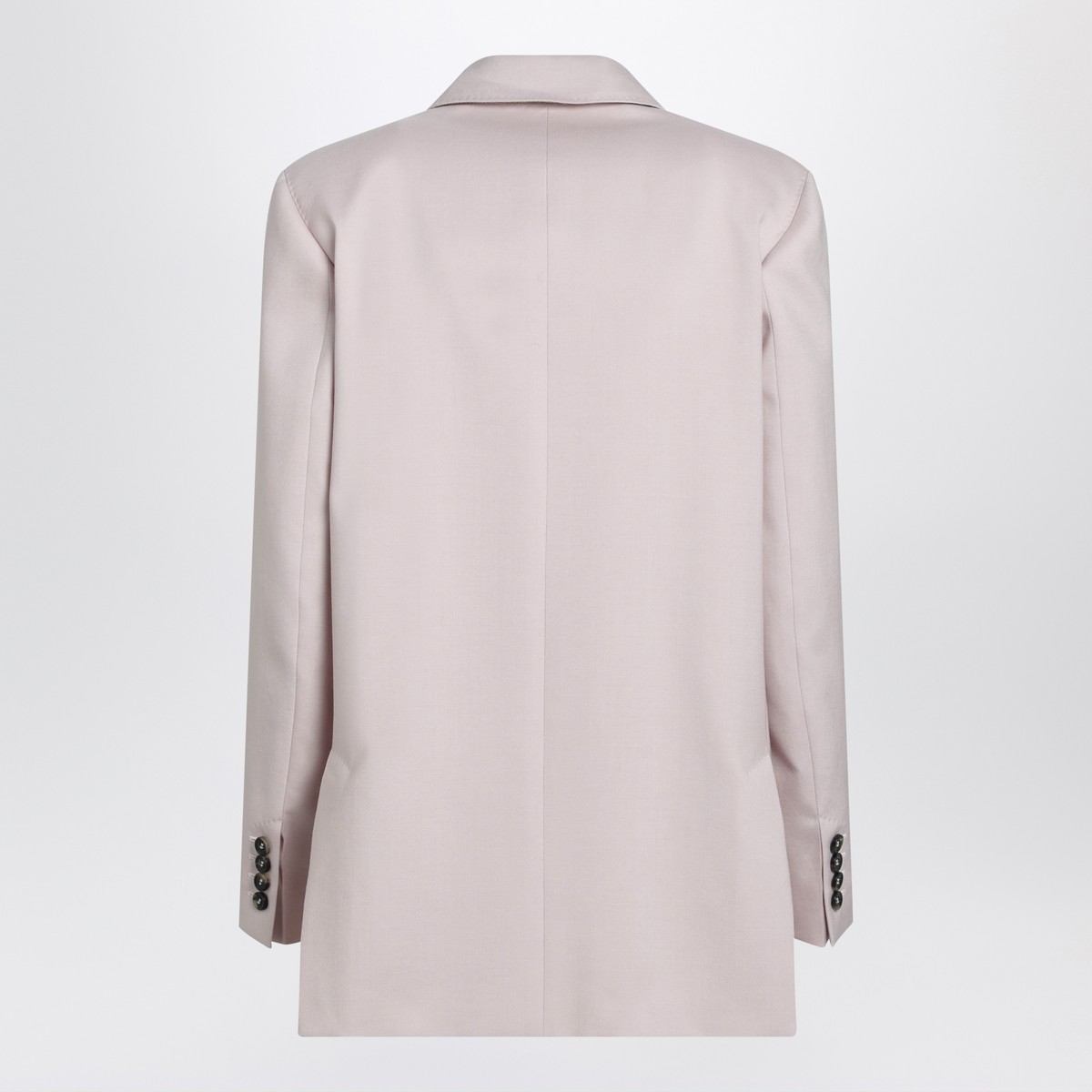 Double-breasted jacket by Max Mara in a rose-beige wool, mohair and silk canvas, featuring an elongated oversized silhouette, peak lapels, chest welt pocket, long sleeves with button cuffs, front button fastening, two front flap pockets and double back vent.