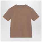 Max Mara T-shirt in hazelnut crêpe viscose yarn, featuring short sleeves, tone-on-tone embossed logo lettering on the front, and ribbed crew neck.