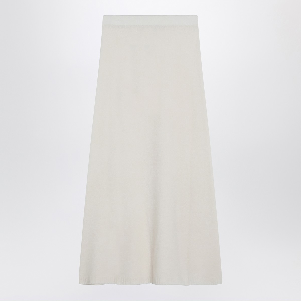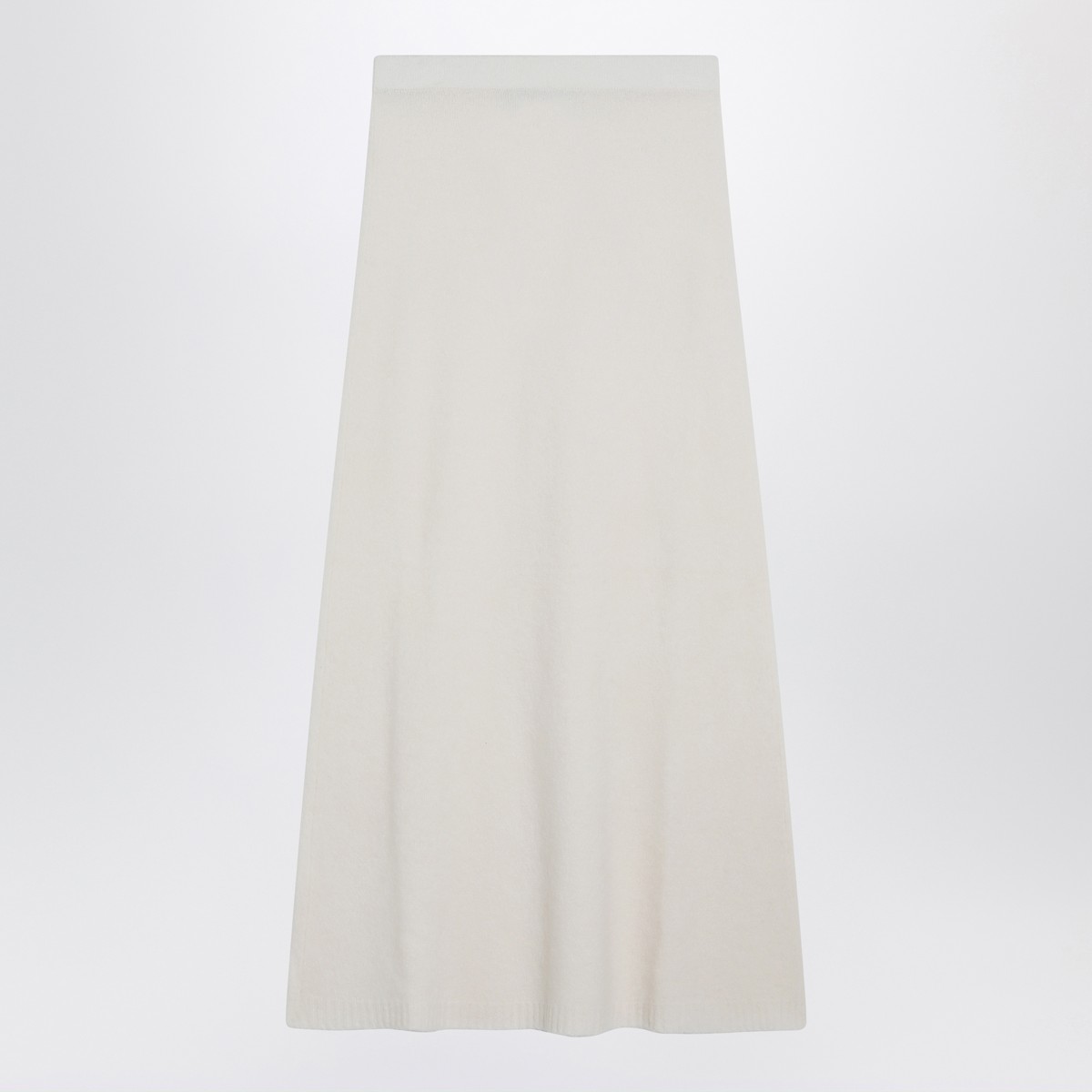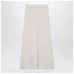 Max Mara long skirt in ivory stretch cashmere blend yarn, featuring a slightly flared silhouette, elasticated waist, ribbed hem and unlined design.