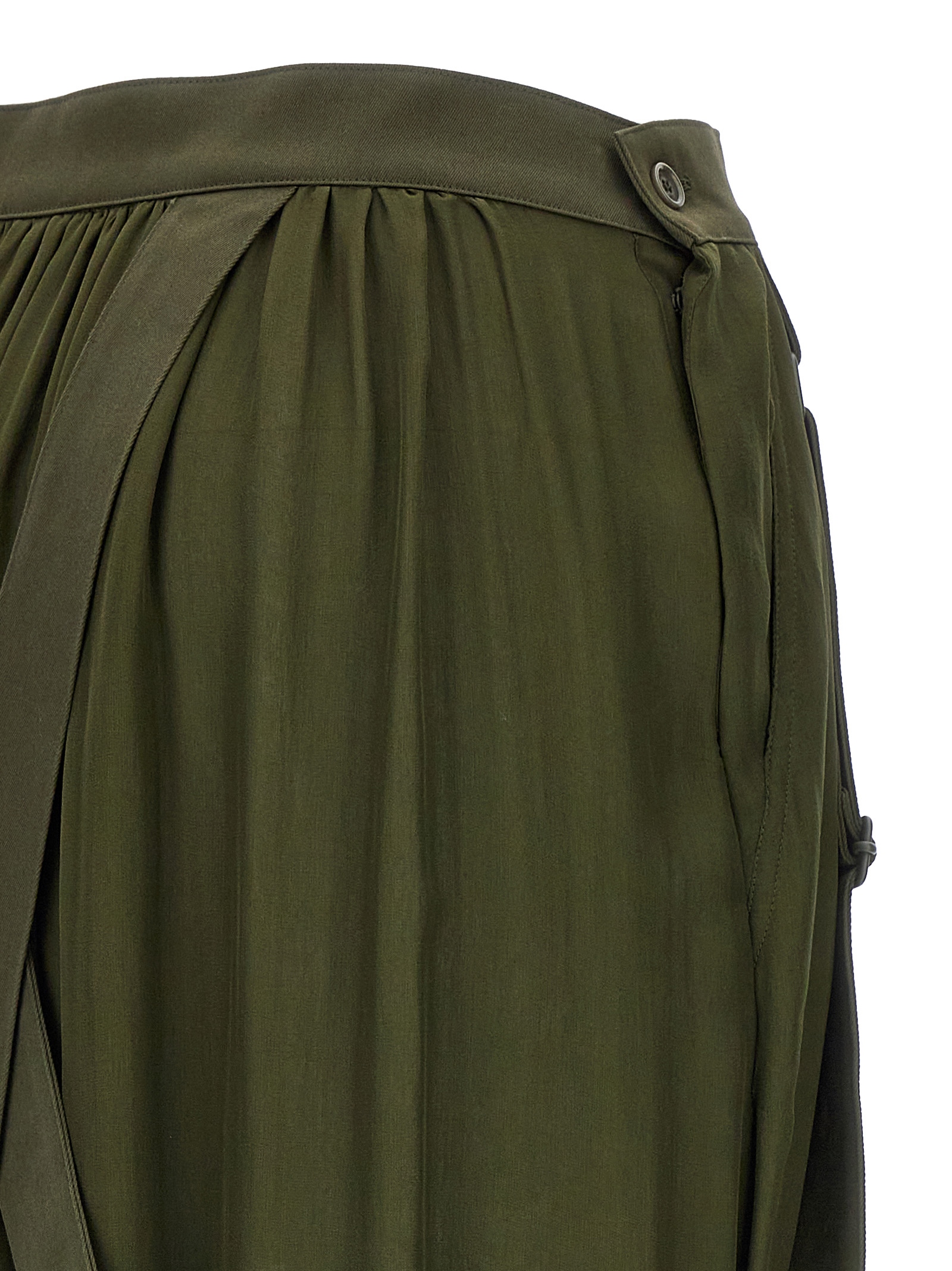 ‘Jedy’ silk chiffon skirt with cotton gabardine belt, adjustable gabardine braces crossed at the back, pockets, button detail on the sides.