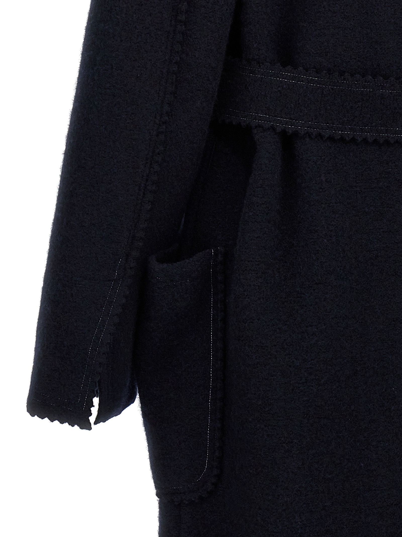 Jene’ wool and cachemire coat with lapel collar, long sleeves, pockets, back split, and matching belt at the waist.