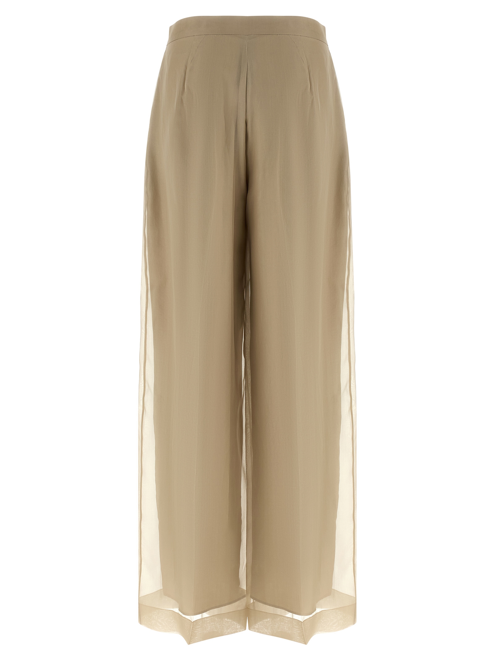 ‘MxeOlivi’ silk organza pants, lining, wide and straight leg, stretched pleat, zip hook and front button closure, pockets, back pin tucks.