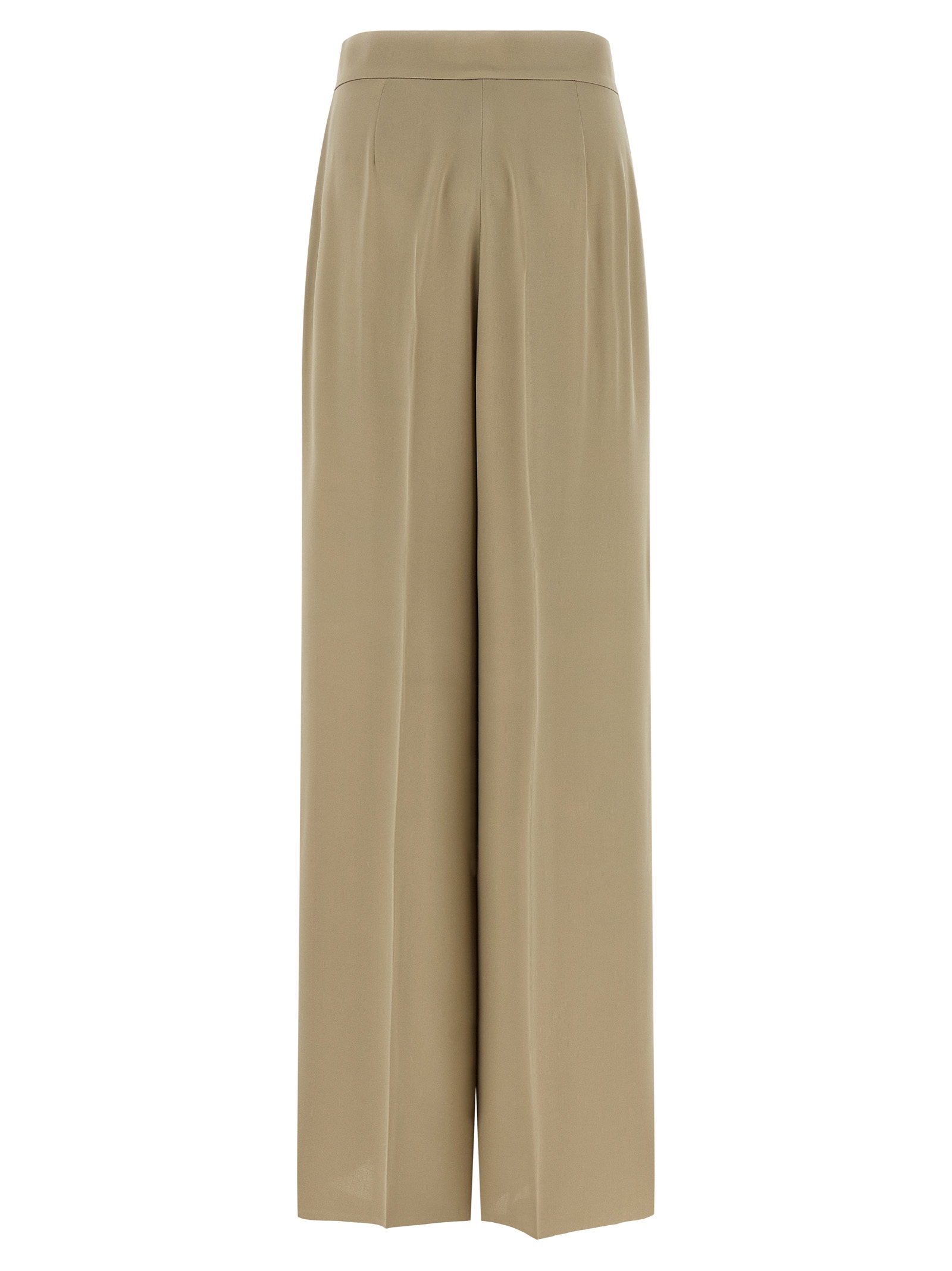 ‘mxepalanca’ tailored silk trousers with double front pincer, Wide leg with central stretched pleat, Hook and button zip strip closure at the waist, Belt loops at the waist, French side pockets and welt pockets on the back.